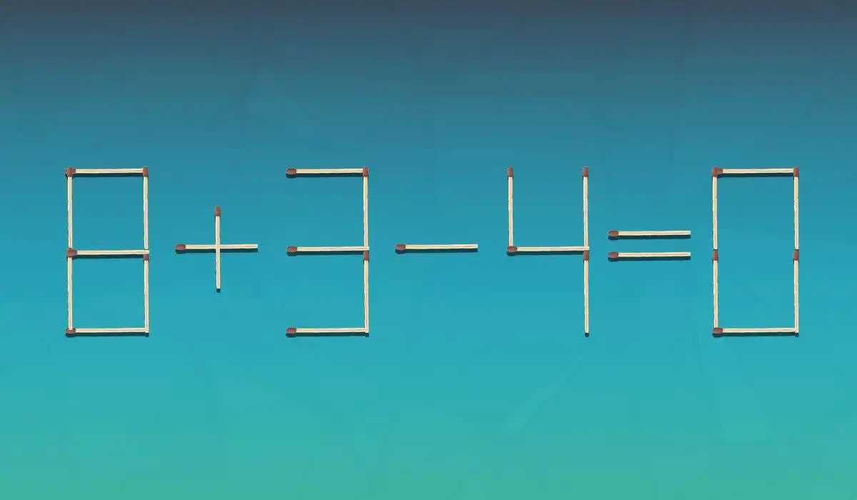 Qui sotto vedrete un’immagine in cui l’uglianza 8+3-4=0 è disposta con dei fiammiferi. È evidente che c’è un errore, perché la risposta dovrebbe essere 7.