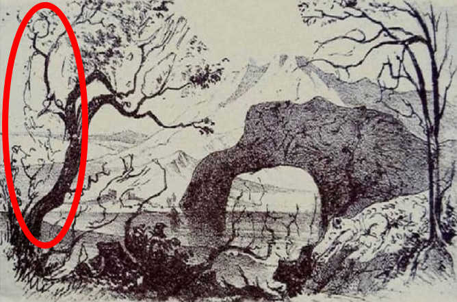 L’uomo nascosto può essere visto come una sagoma appoggiata a un albero sul lato sinistro dell’immagine. Sembra che stia fumando una pipa.