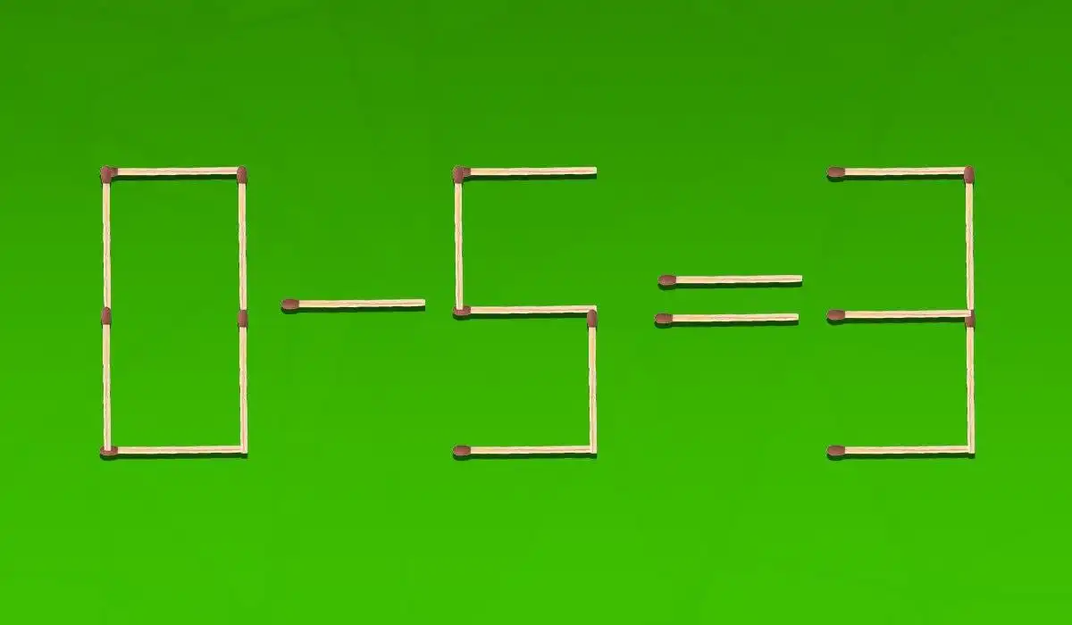 Qui di seguito vedrete un’immagine in cui l’uglianza 0-5=3 è disegnata con dei fiammiferi e contiene un errore.