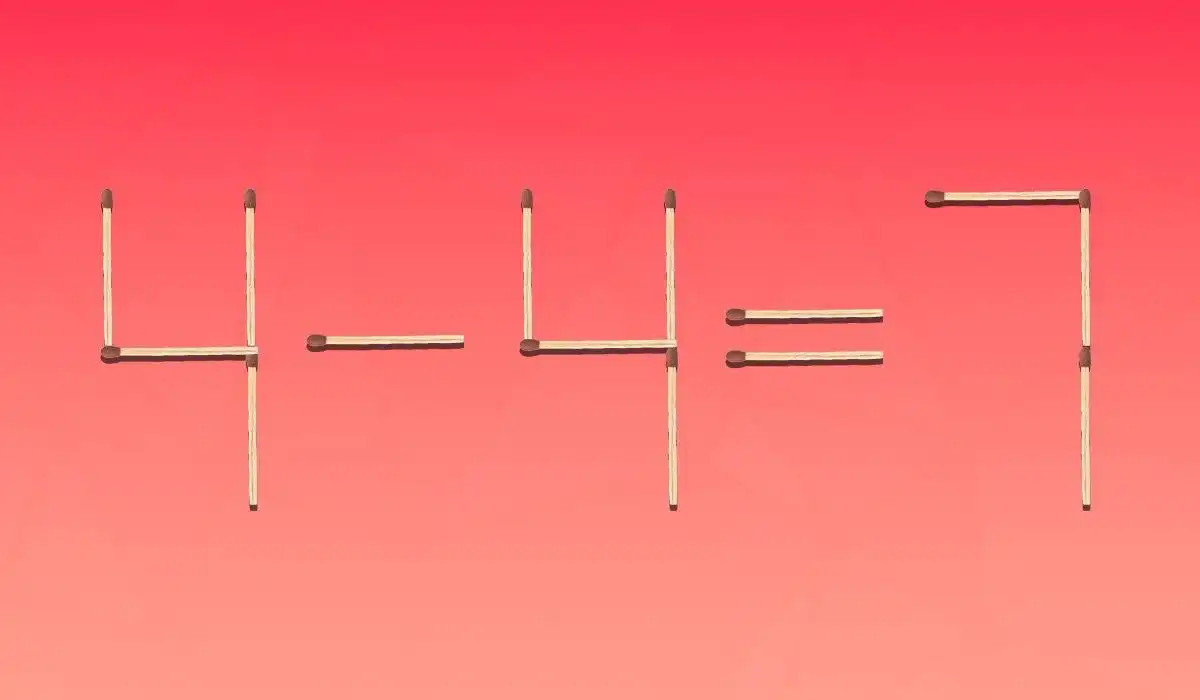 Qui di seguito vedrete un’immagine in cui l’uglianza 4-4=7 è disposta con l’aiuto di fiammiferi. È evidente che c’è un errore, perché la risposta dovrebbe essere 0.