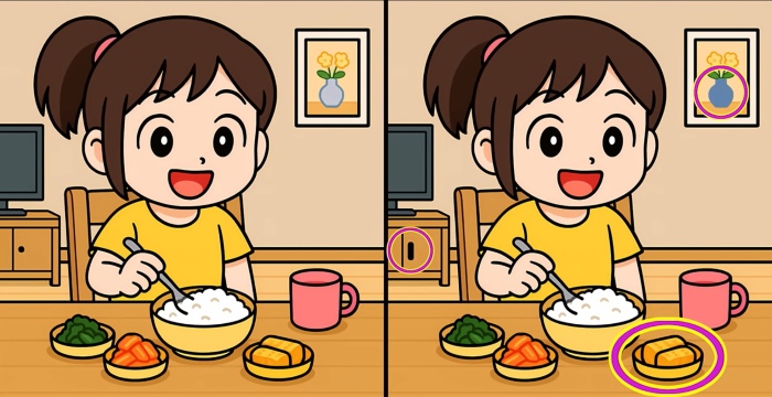 Allora, siete pronti per il compito? Osservate attentamente le due immagini della ragazza a tavola. A prima vista possono sembrare identiche, ma ci sono 3 piccole differenze. Pensate di riuscire a trovarle tutte in 49 secondi? Provate e mettete alla prova la vostra acutezza visiva!