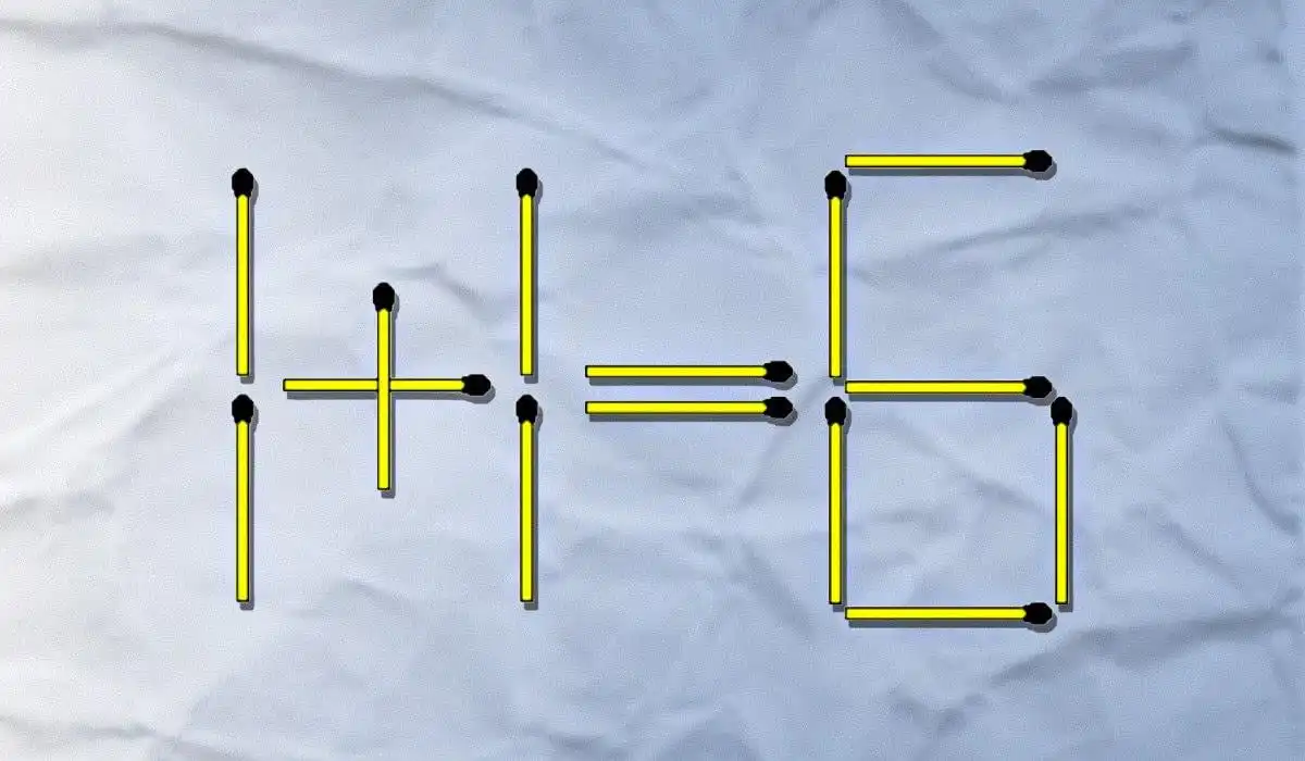 Nell’immagine qui sotto vedrete l’uglianza 1+1=6, disposta con dei fiammiferi. Ovviamente c’è un errore e dovete correggerlo.