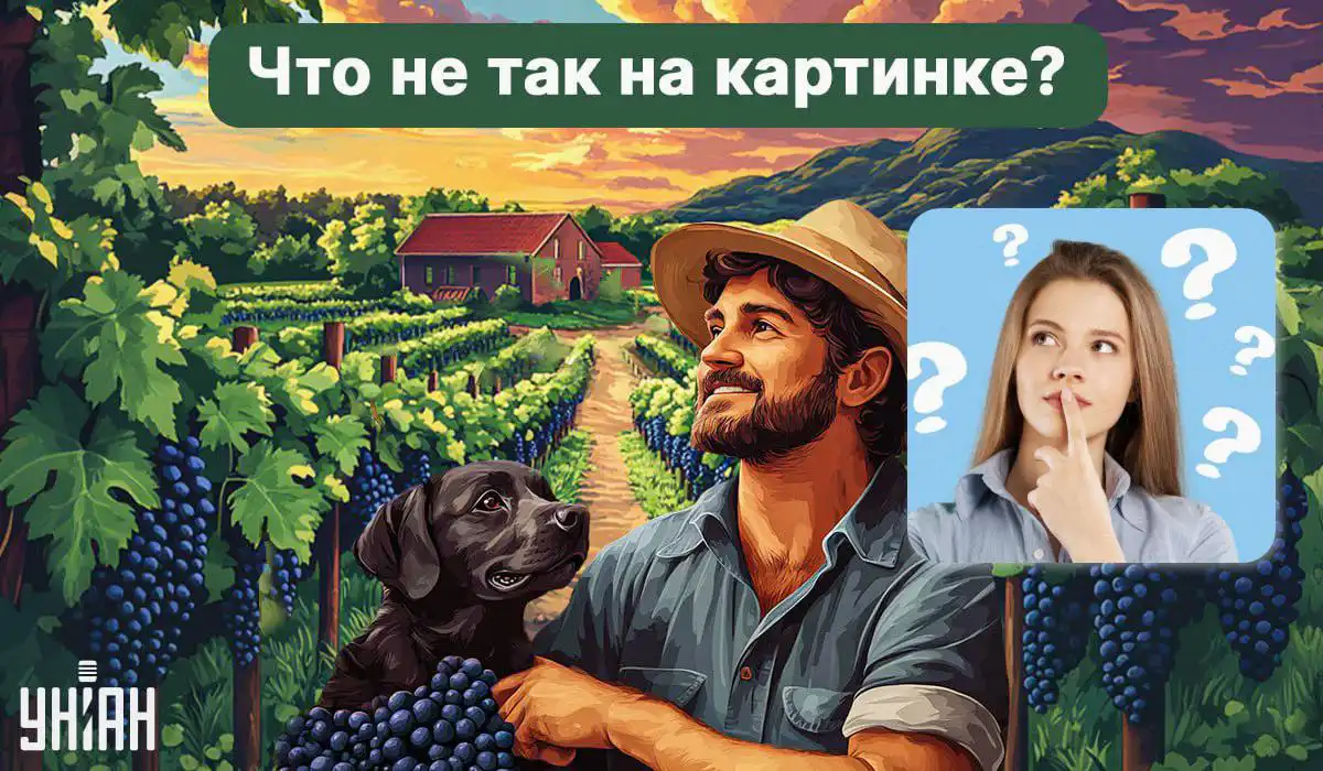 Qui sotto vedrete l’immagine di un vigneto dove un uomo sta raccogliendo l’uva. Nelle vicinanze c’è il suo fedele cane, che non lascia mai solo il padrone. Sembra che cosa ci sia di insolito qui?