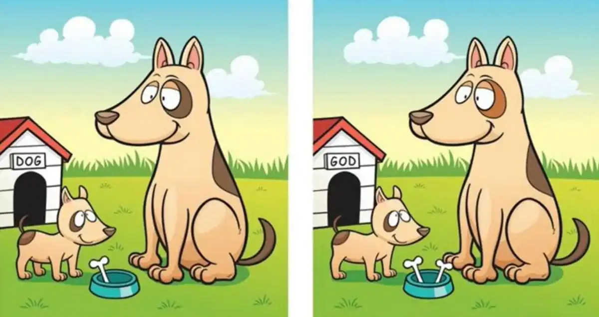 Siete pronti a testare la vostra attenzione? Osservate due immagini di un cane e di un cucciolo. A prima vista, le immagini sembrano esattamente ugi, ma in realtà presentano cinque piccole differenze.
