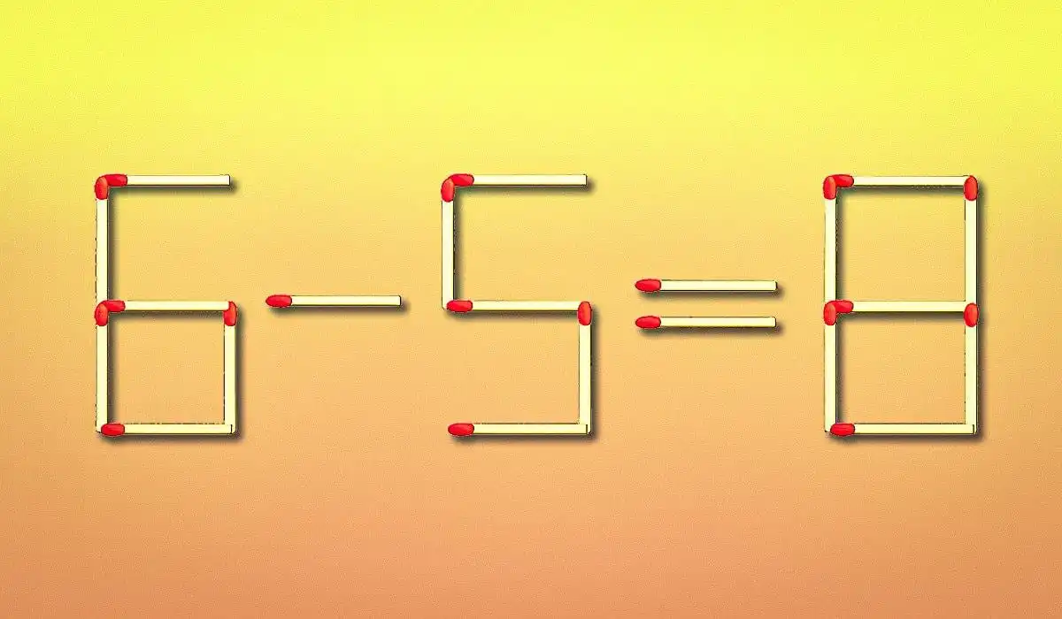 Qui di seguito vedrete un’immagine in cui l’uglianza 6-5=8 è risolta con l’aiuto di fiammiferi. Ovviamente c’è un errore.
